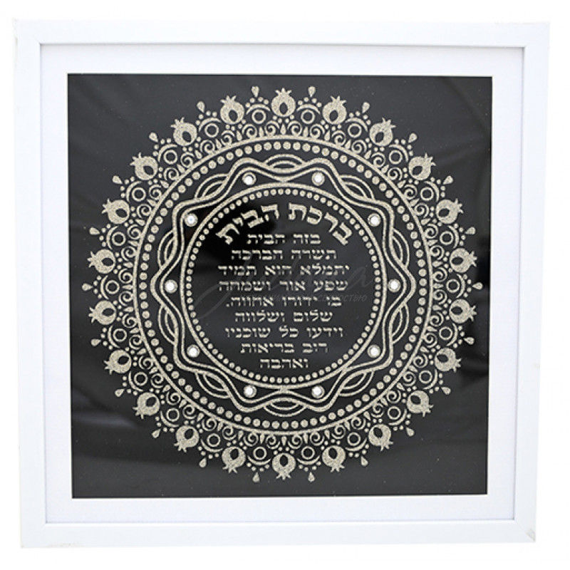 Благословение для дома квадратной формы в белой рамке. Украшено золотистыми блестками (глиттер) придает ему торжественности, поэтому это благословение может стать отличным подарком к любому празднику.