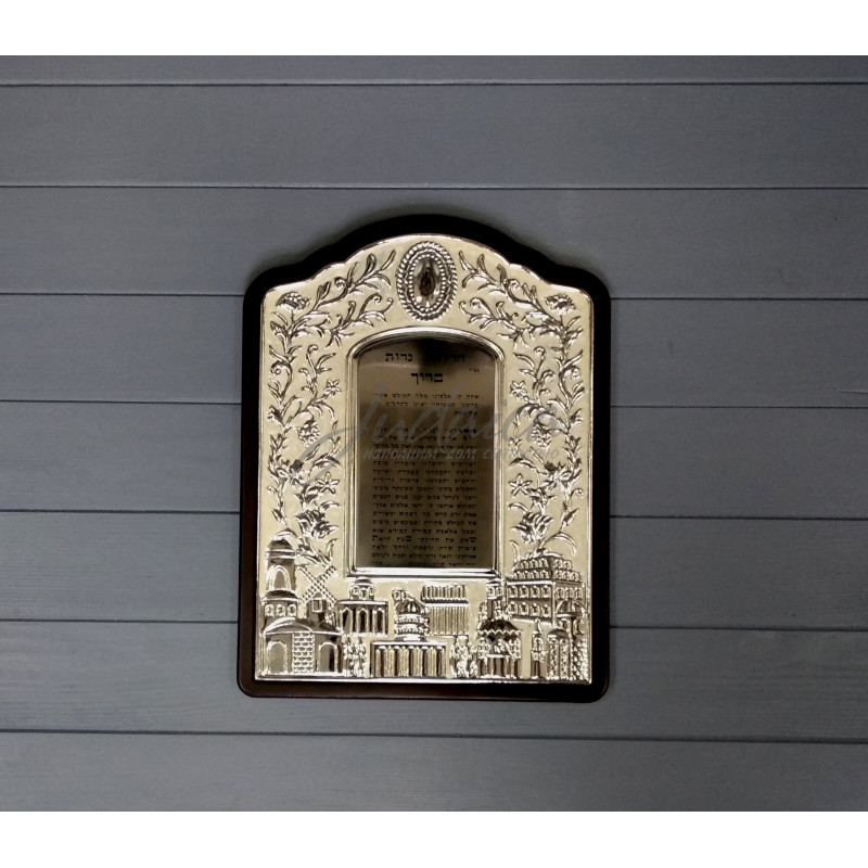 Очень красивое благословение в деревянной раме. Текст благословения выгравирован на металлической пластине перламутрового цвета и покрыт серебряным напылением, что является его особенностью и преимуществом. Такое благословение, безусловно, будет украшением заповеди о зажигании свечей в Шаббат.