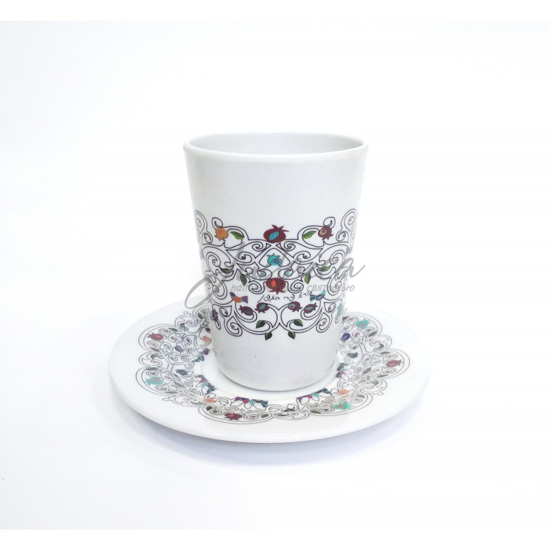 Бокал пластиковый для кидуша с блюдцем, принт "Гранат"