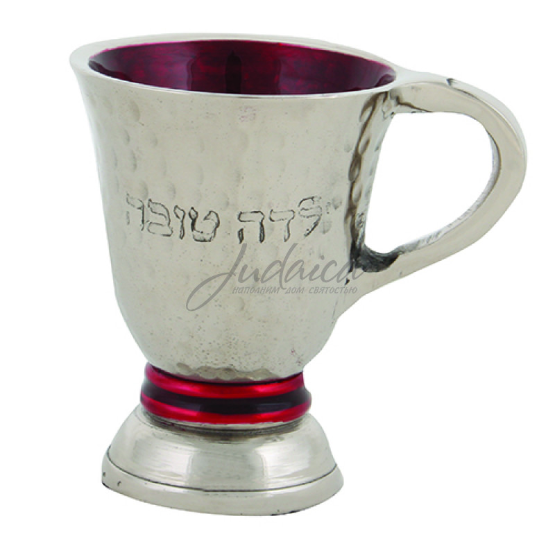 Красивый, небольшой бокальчик для кидуша с надписью на иврите "Хорошая девочка"(Ялда това). С этим бокалом ребенок будет приобщаться к выполнению заповеди, подражая взрослым.