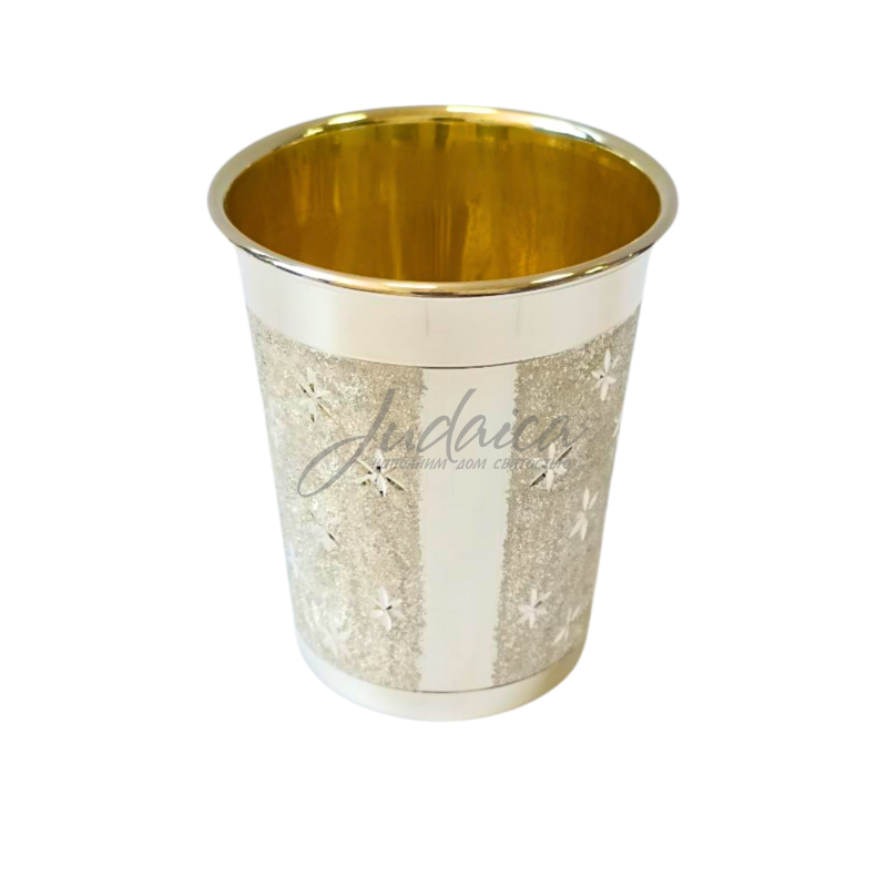 Этот изысканный бокал для кидуша выполнен из серебра, что придает ему особую прочность и благородный блеск. Внутренняя часть бокала также посеребрена, что обеспечивает дополнительную защиту напитков от окисления и придает ему элегантный вид.