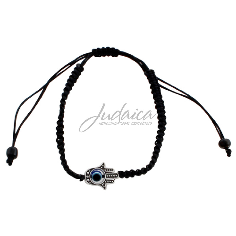 Черный плетенный браслет, украшен Хамсой. Размер - универсальный.