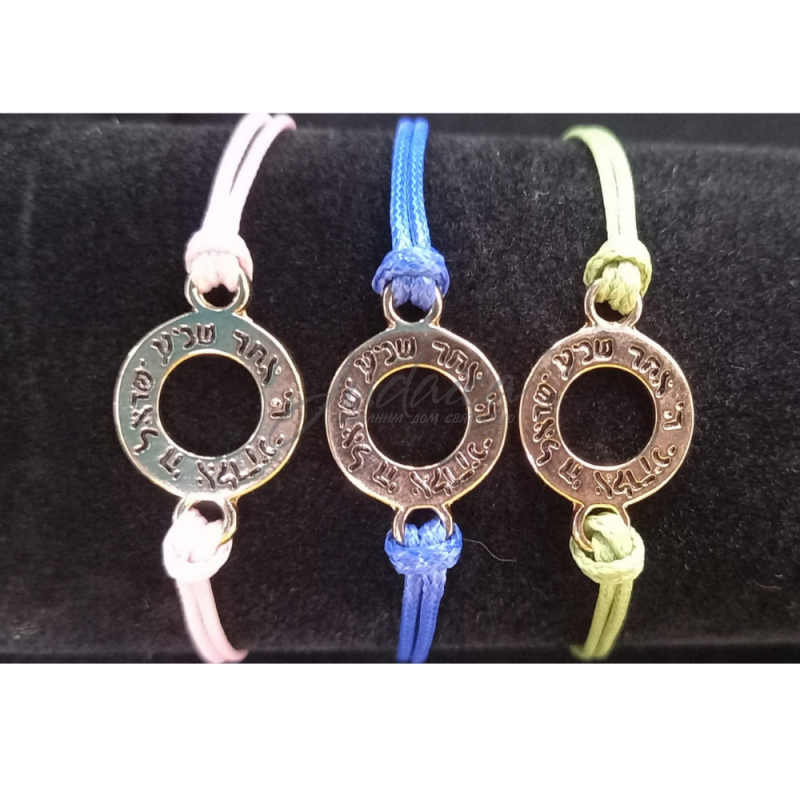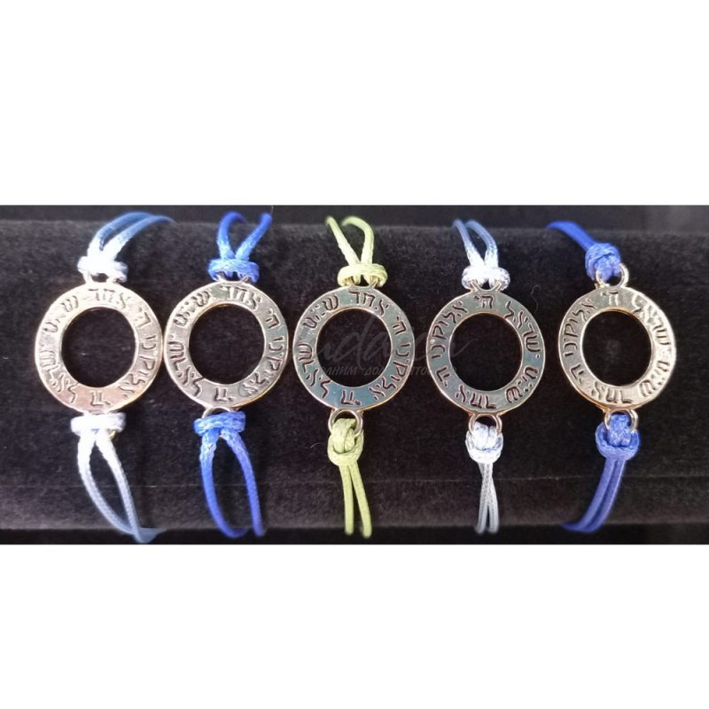 Браслет с золотистым кольцом, на котором написана строка одной из самых главных еврейских молитв - "Шма Исроэль". Браслет подойдет на любую руку, за счет удлиняющей цепочки.