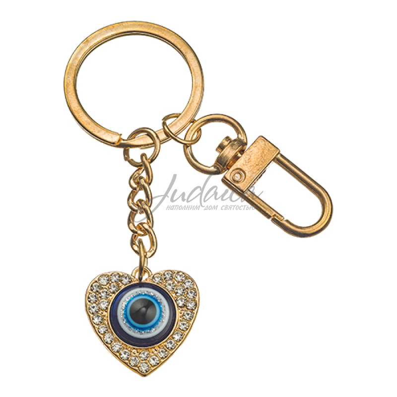 Брелок «Golden Eye» — элегантный амулет Judaica с синим глазом от сглаза и декоративными подвесками. Символ защиты, удачи и благословения. Подходит для ключей, сумки или автомобиля. Прекрасный подарок, сочетающий духовный смысл и стильный дизайн.