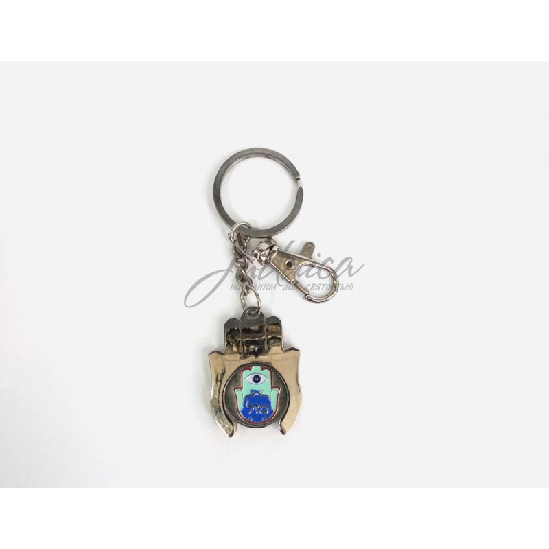 Брелок в необычном дизайне с Хамсами. На обратной стороне - дорожная молитва на английском языке, дополнен карабином.