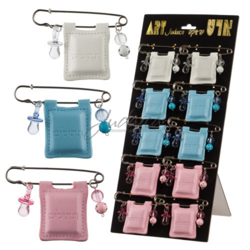 Детский Тегилим на булавке в мини-формате. Его будет удобно вешать на детскую коляску или кроватку. Ассортимент представлен в 3-х цветах: розовый, светло-голубой и белый. При заказе, указывайте выбранный Вами цвет.
