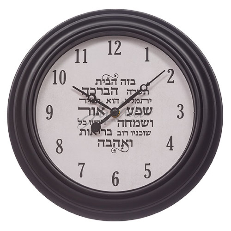 Часы "Black" с благословением для дома – стильный настенный аксессуар с еврейской символикой. Классический черный корпус и циферблат с благословением создают атмосферу уюта и духовной гармонии. Подходят для гостиной, кухни или кабинета. Отличный выбор для дома или в подарок.