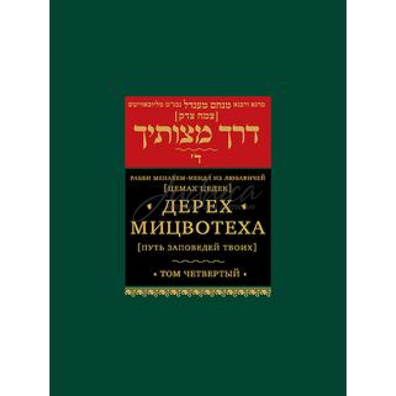 Дерех мицвотеха (“Путь заповедей Твоих”) - классический труд третьего Любавичского Ребе, р. Менахема-Мендла Шнеерсона, прозванного по названию его главного ѓалахического труда Цемах Цедек. Книга эта посвящена сокровенному смыслу заповедей Торы. Излагая смысл заповедей, р. Менахем-Мендл последовательно и систематично знакомит читателя с основными положениями учения хасидизма Хабад, созданного его дедом и наставником, р. Шнеуром-Залманом из Ляд, Старым Ребе. В четвертый том многотомного издания вошли семь разделов, каждый из которых посвящен какой-либо заповеди. На русский язык “Путь заповедей Твоих” переводится впервые.