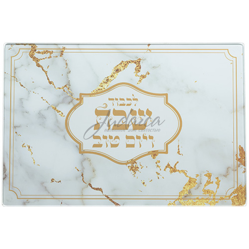 Доска для халы в стильном дизайне под мрамор с золотым вкраплением. Доска изготовлена из небьющегося стекла.