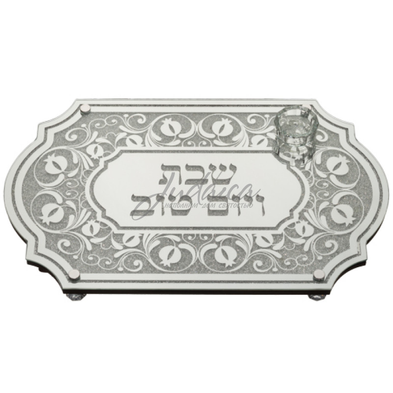 Доска для халы "Гранат" – изящное сочетание традиции и красоты. Овальной формы с серебристым глиттером, она украшена элегантными гранатовыми мотивами. На ней выделяются надписи "Шаббат" и "Йом Тов", делая ее прекрасным символом для особых семейных моментов и праздников.