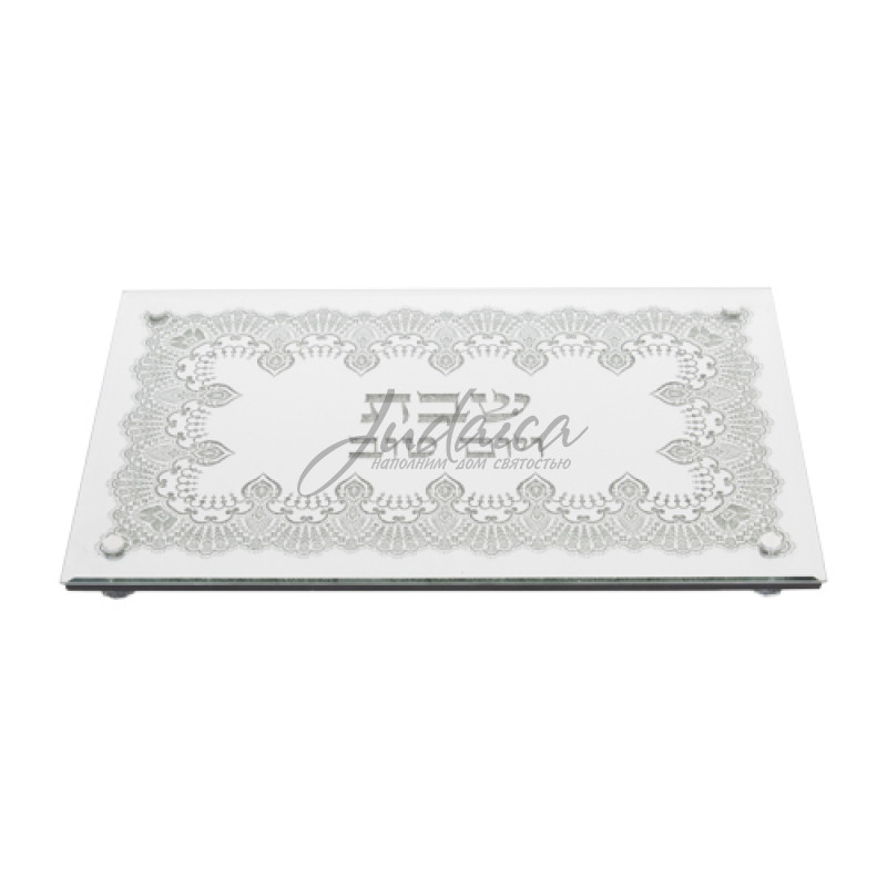 Зеркальная доска для халы украшена элегантным кружевом. Такая доска, несомненно, будет украшением заповеди встречи Субботы.