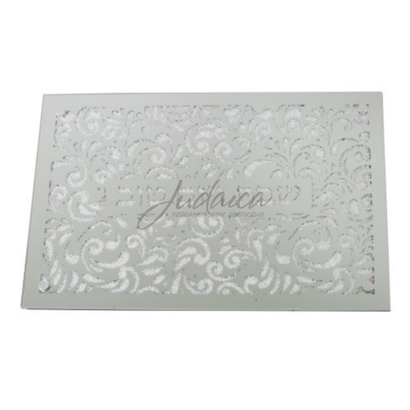 Красивая деревянная доска для халы с зеркальной поверхностью, украшенная нежными узорами и россыпью мелких камней под стеклом. Есть ножки, за счет чего ее будет удобно ставить на стол. Такая доска станет прекрасным дополнением Вашего Шаббатнего стола и будет радовать Вас и Ваших гостей.