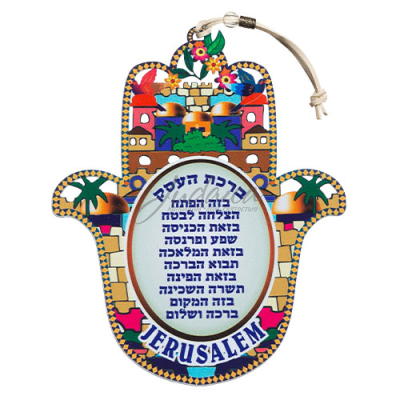 Хамса с благословение для бизнеса. Выполнена из металла, украшена ярким принтом.