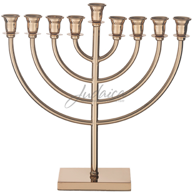 Ханукия «Gold Rose» высотой 32 см выполнена из металла с покрытием в оттенке розового золота. Простая и удобная конструкция обеспечивает лёгкую установку свечей, а устойчивое основание предотвращает опрокидывание. Практичный выбор для использования в дни Хануки дома или в общественных местах.