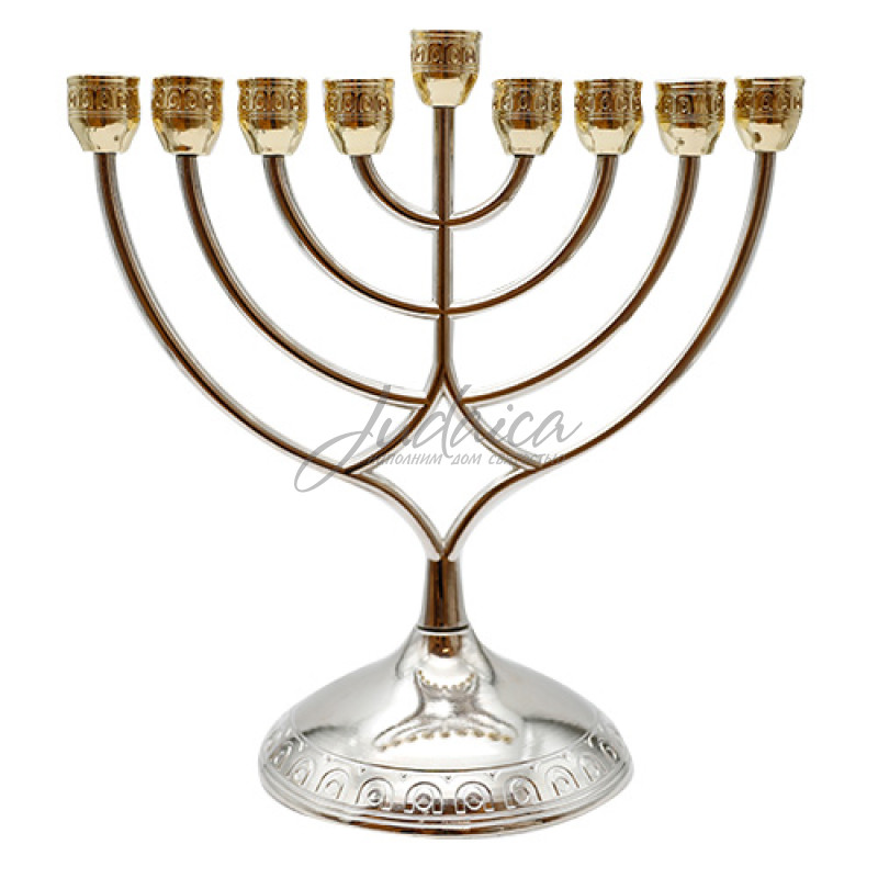 Ханукия "Golden"– классический ханукальный светильник с изящным металлическим дизайном. Выполнена в серебристо-золотых тонах с прочными держателями для свечей. Устойчивая конструкция делает её удобной и безопасной в использовании.