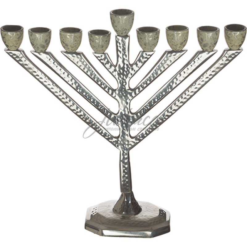 Стильная Ханукия в светлых тонах, выполнена из металла. Украшением служат перламутровые чашечки. Такая Ханукия будет замечательным атрибутом праздника.