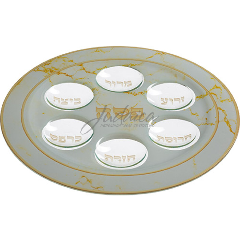 Откройте дверь в мир традиций Песаха с кеарой "Голд Марбел". Этот пасхальный поднос украсит ваш седерский стол. Изготовленный из высококачественных материалов с золотистым мраморным узором, он добавит изысканности и благородства вашему празднованию. Кеара идеально подходит для размещения традиционных символов Песаха: з'роа, бейца, марор, харосет, карпас и хазерет, каждый из которых напомнит вам и вашим близким о важности свободы и семейных традиций.