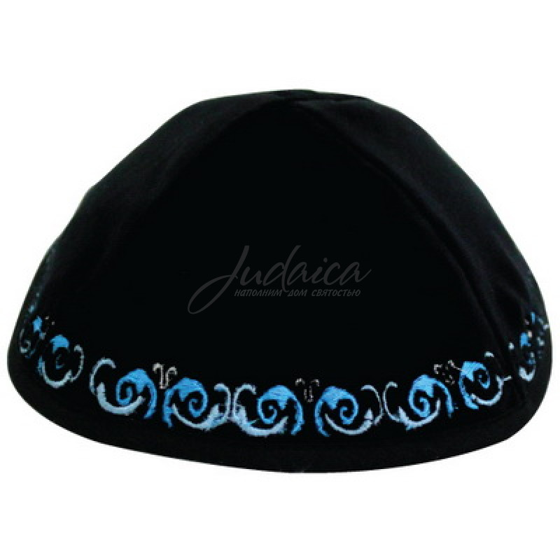 Традиционная темно-синяя бархатная кипа с орнаментом. Высококачественный бархат. Хорошо держит форму.