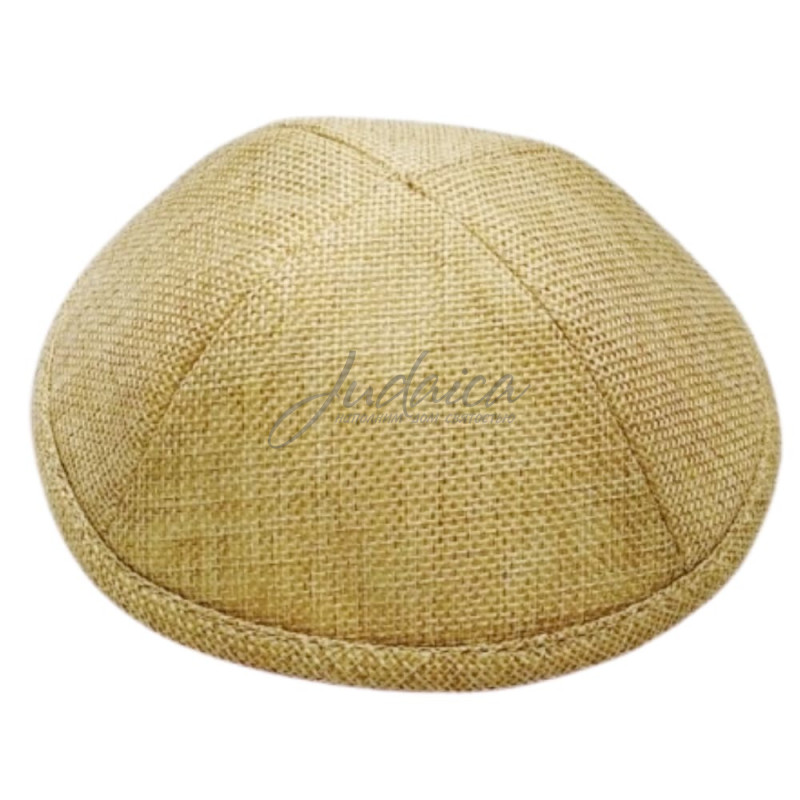 Фабричная кипа выполнена плетением в бежевой расцветке, есть подкладка и место для заколки.