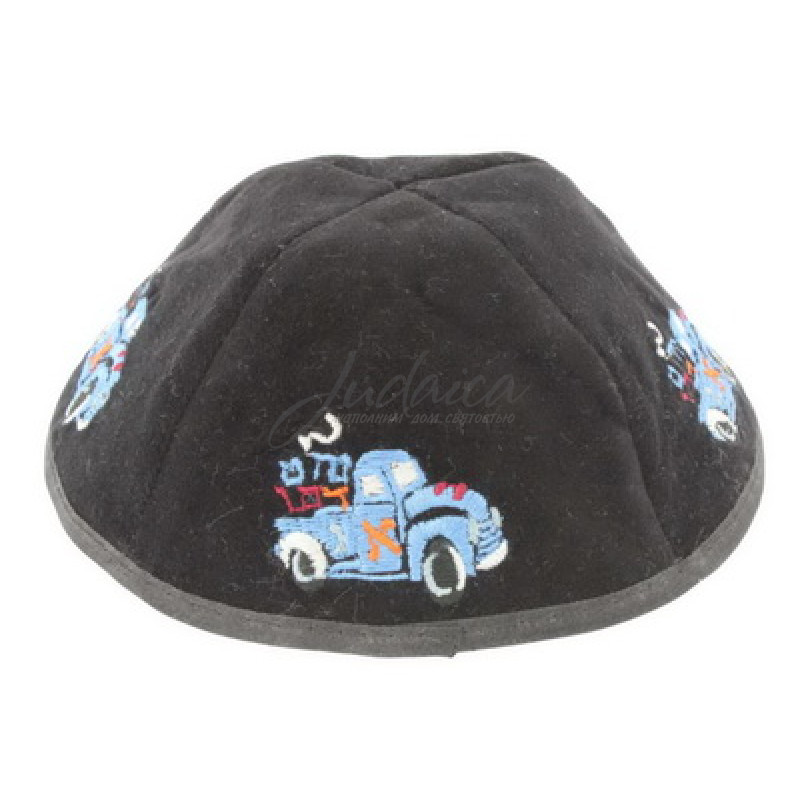 Детская кипа черного цвета с вышивкой, выполнена из бархата, замечательно качества, отлично держит форму.