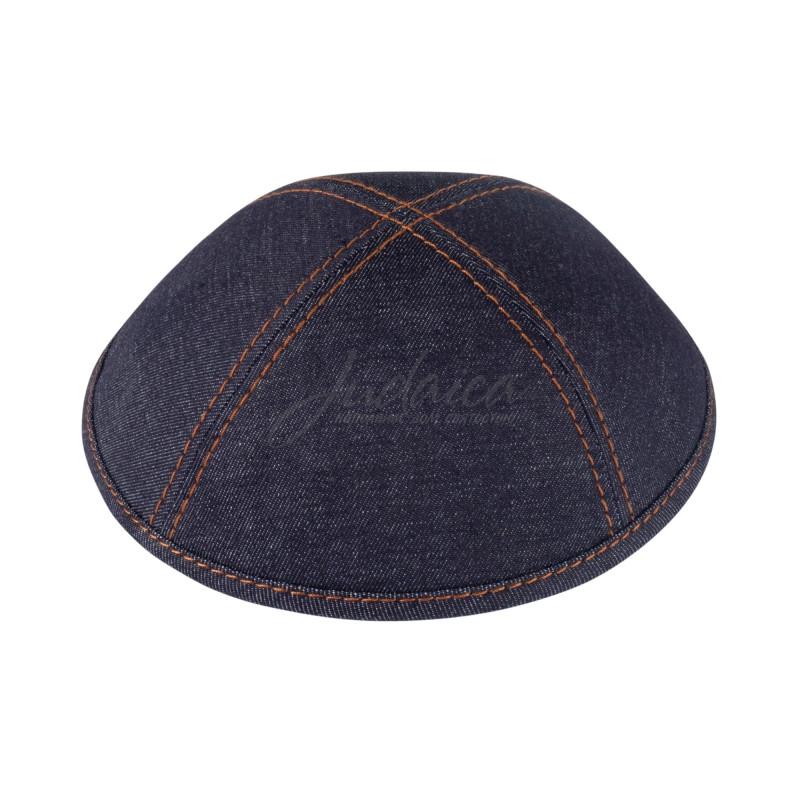 Высококачественная темно-синяя джинсовая кипа с трендовым двойным кантом в цвете кэмел по всей длине. Эта отличная кипа прекрасное дополнение к любой коллекции! Удобная посадка доступна благодаря широкому выбору размеров.