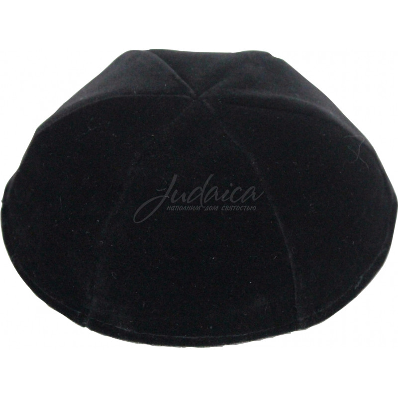 Традиционная черная бархатная кипа ХаБаД из 6 клиньев. Высококачественный натуральный бархат. Хорошо держит форму, есть подкладка.