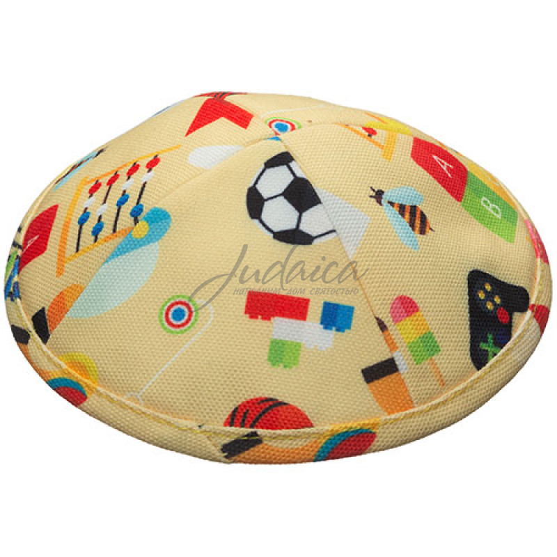 Кипа детская с ярким принтом, есть подкладка и место для заколки.