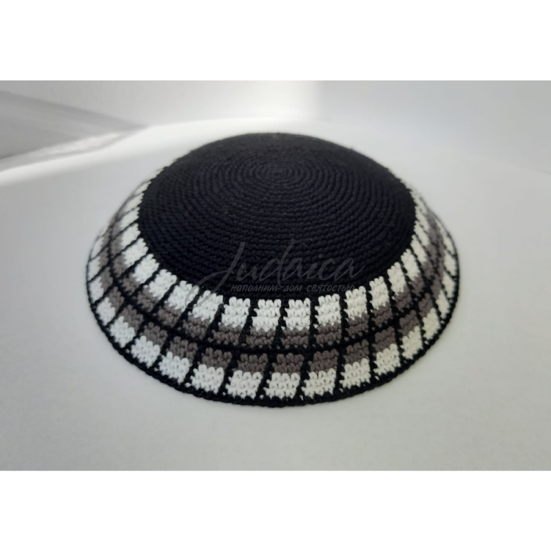 Черная вязаная кипа, выполнена ручной вязкой из нитей самого высокого качества.