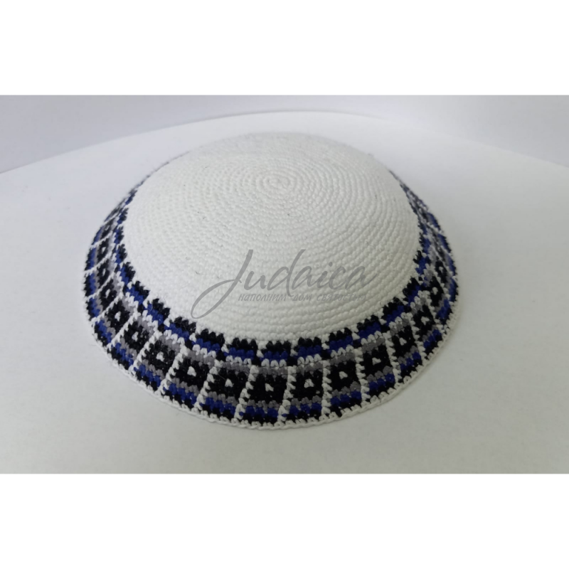 Вязаная кипа с интересными яркими узорами. Ручная вязка. Изготовлена из высококачественных ниток.