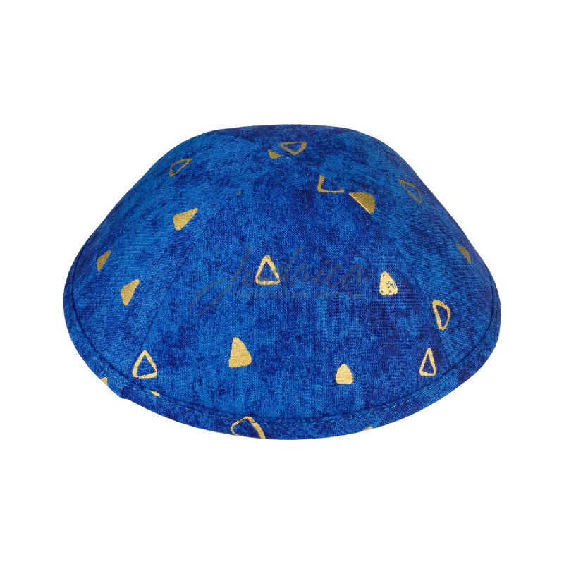 Кипа в трендовом ярком, насыщенном синем цвете украшена золотистыми символами. Владелец такой кипы не останется незамеченным. Кипа имеет подкладку и место для заколки.