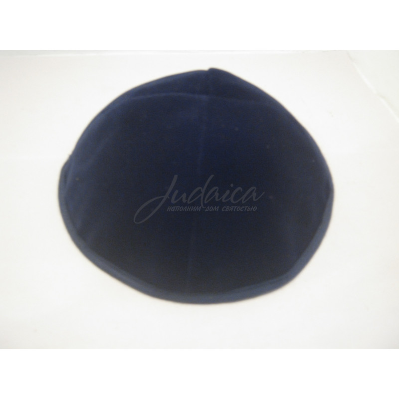 Традиционная темно-синяя бархатная кипа. Высококачественный натуральный бархат. Хорошо держит форму, достаточно глубокая. В двух расцветках: ярко- синяя (цвет индиго) и темно-синяя
