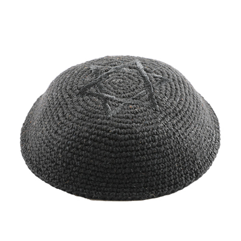 Вязаная кипа с вышивкой Маген Давид (Звезда Давида), машинная вязка, черного цвета.
