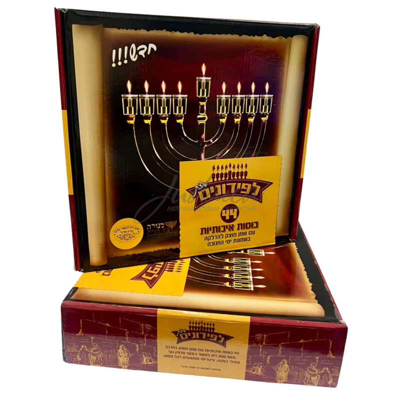 Набор Lefidoneem — идеальное решение для зажигания ханукальных огней. В каждом стаканчике уже налито качественное оливковое масло и установлен фитиль — просто достаньте и поставьте в ханукию.