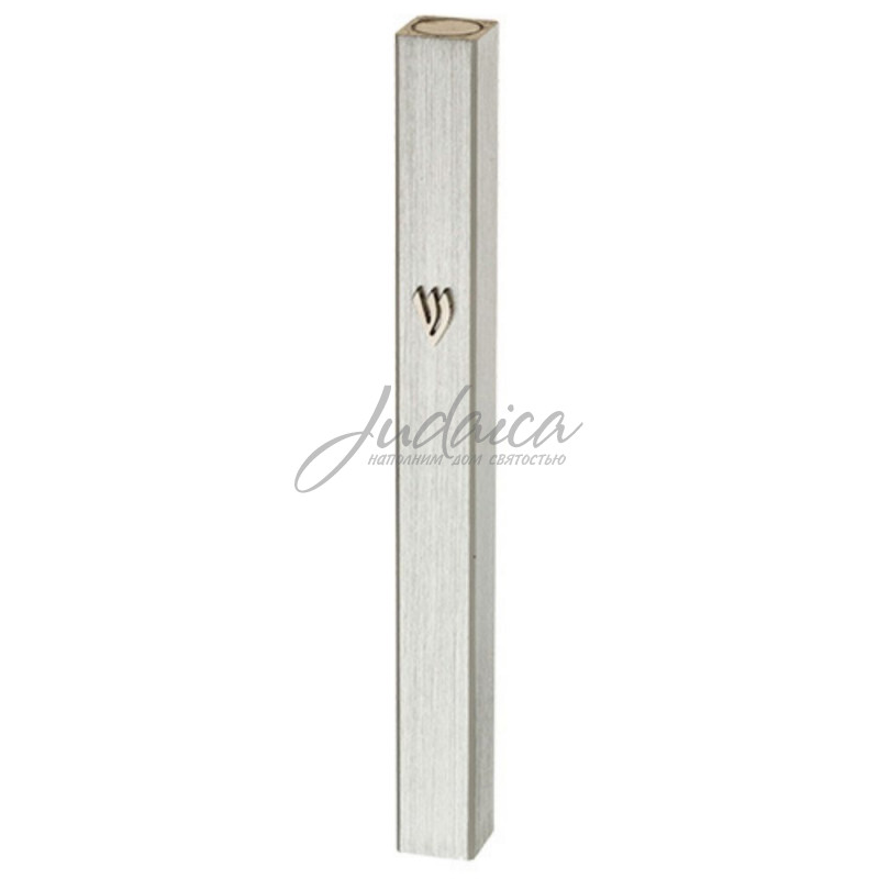 Стильная, лаконичная коробочка для мезузы, изготовлена из металла в красивом сером цвете.