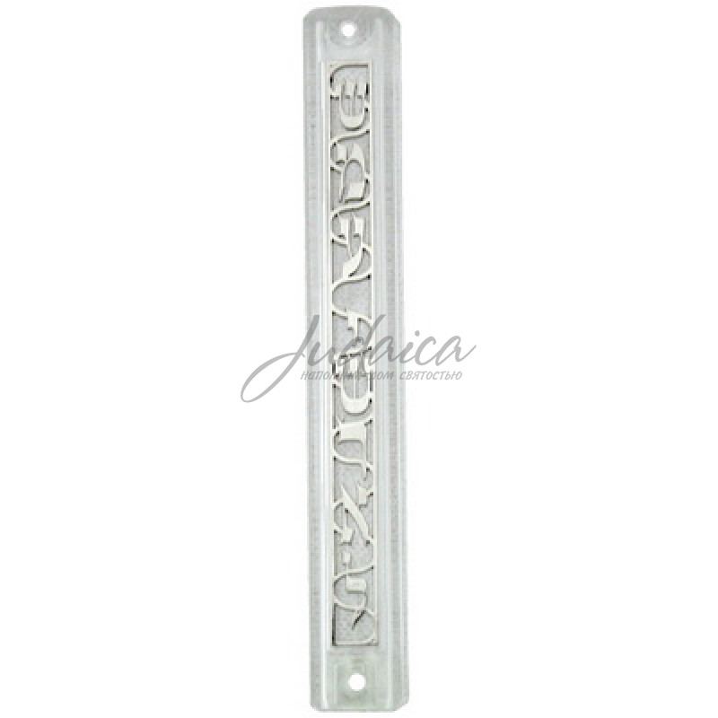 Изящный, прозрачный футляр для мезузы, украшен надписью "Шма Исраэль". Мезуза в этом футляре будет не только важным атрибутом еврейской жизни, но и украшением Вашего интерьера.