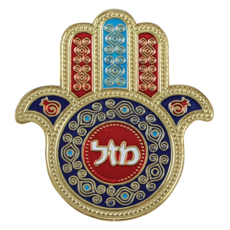 Магнитная Хамса с пожеланием удачи в красивом узорчатом дизайне.