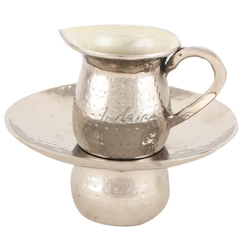 Сосуд для процедуры "маим ахроним" выполнен в лаконичном стиле, украшен жемчужной акриловой эмалью. Такой вариант будет замечательным подарком для тех, кто чтит и соблюдает традиции своего народа.