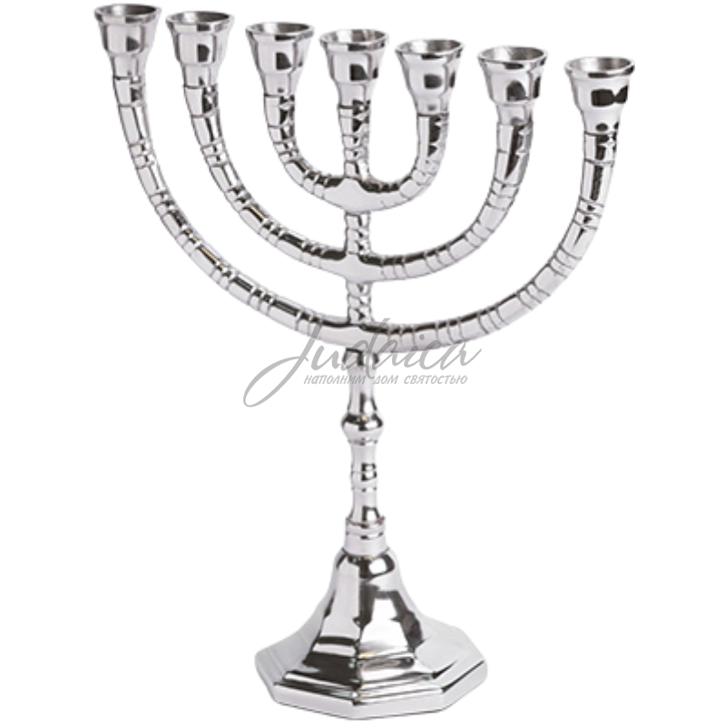 Традиционная Менора серебристого цвета, изготовлена из металла с никелированной отделкой. Эта Менора будет замечательным и оригинальным подарком к любому еврейскому празднику.