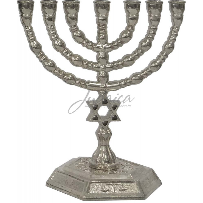 Компактная Менора серебристого цвета со Звездой Давида. Особенность Меноры - устойчивая подставка, которая украшена различными еврейскими символами, а также. Приобретая такую Менору, вы приобщаете себя к традициям своего народа.