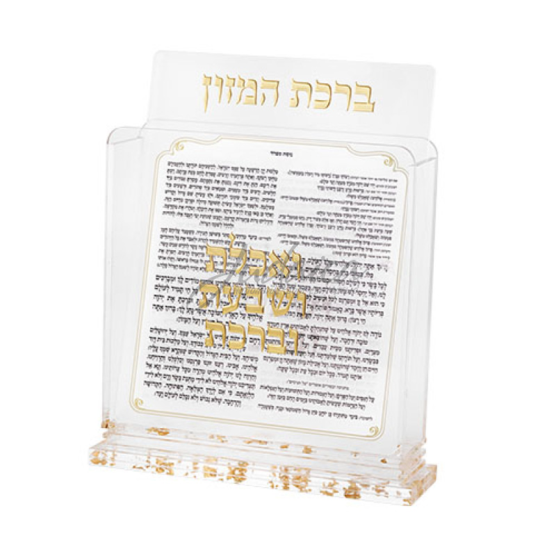 Набор «Биркат аМазон» ашкеназ — изящное акриловое оформление молитвы после еды. Украшен золотыми акцентами и еврейской надписью «ברכת המזון». Подставка предназначена для удобного чтения и украшает интерьер дома. Идеальный подарок для семьи, на свадьбу или новоселье.