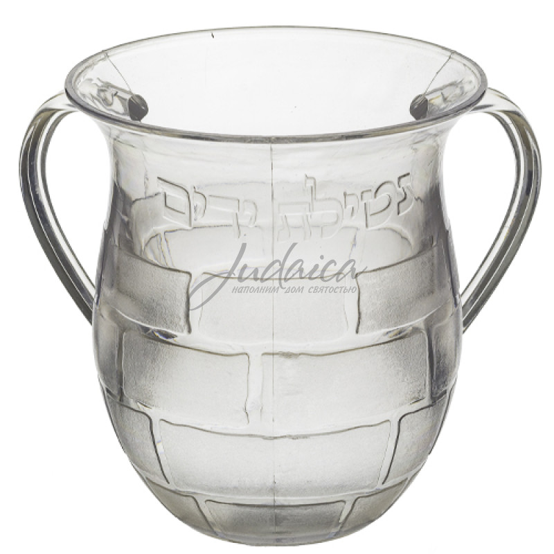 Натла «Crystal Touch» выполнена из прозрачного стекла с рельефным узором, напоминающим кладку Стены Плача. Элегантная и практичная посуда для ритуального омовения рук перед молитвой и едой. Современный дизайн в сочетании с традицией — отличный выбор для дома или в подарок.
