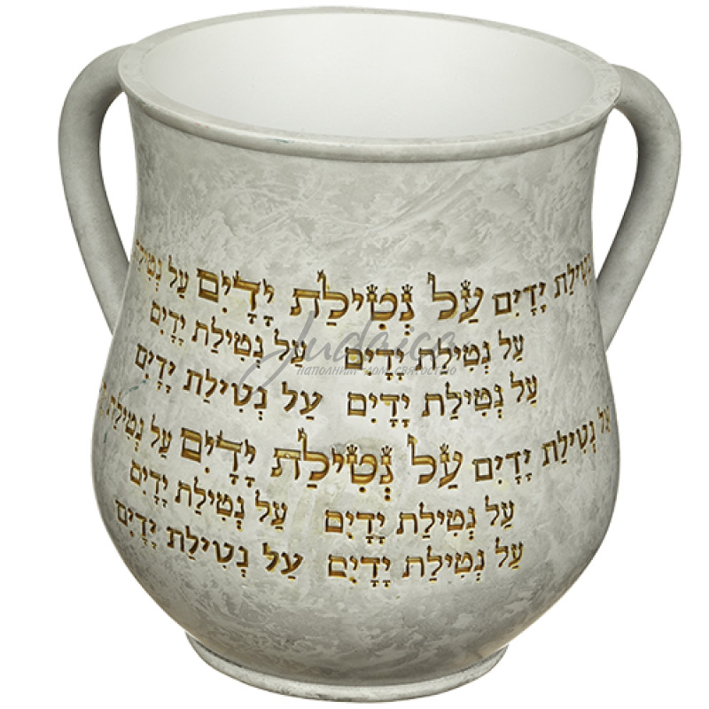 Натла для омовения рук с благословением на иврите — классическая форма и элегантный мраморный дизайн делают её идеальным элементом для соблюдения еврейских традиций. Золотая надпись придаёт изделию утончённый вид, подчёркивая важность ритуала нетилат ядаим. Отличный выбор для дома, синагоги или в подарок.