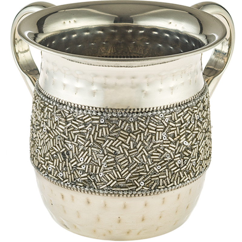 Натла "Shine" – металлический сосуд для омовения рук с оригинальным узором. Декоративная отделка придает ему выразительный вид. Две ручки обеспечивают удобство использования согласно традиции. Подходит для дома, синагоги или в подарок.