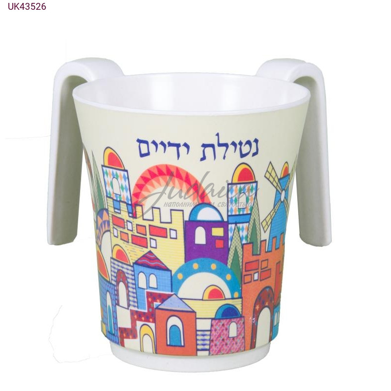 Красочный традиционный нателатник с изображением Иерусалима. Отличный вариант для выполнения «Нетилат Ядаим».