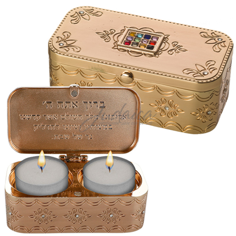 Подсвечники дорожные "Голд Хошен" представляют собой элегантный набор для путешествий, который позволяет сохранять традиции Шаббата, где бы вы ни находились. Изделие выполнено в золотистом тоне с тонким рельефным орнаментом и украшено изображением Хошена. Компактный и функциональный, этот набор включает в себя два подсвечника, идеально вписывающихся в изысканный металлический кейс, что делает его практичным и стильным аксессуаром для соблюдения религиозных обрядов в дороге.
