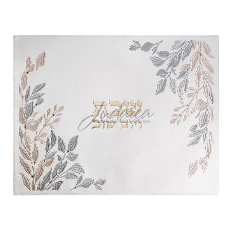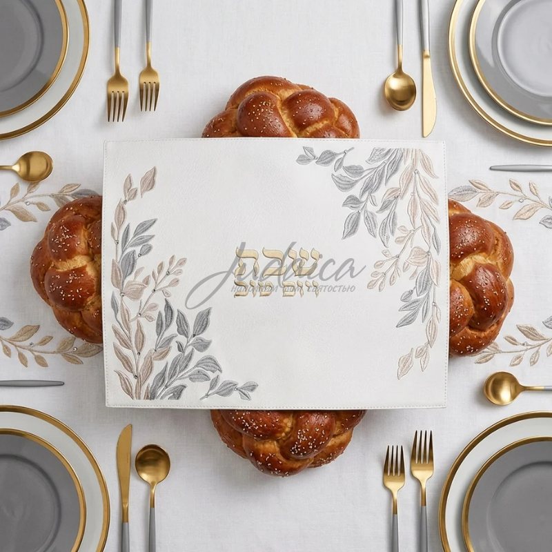 Это покрывало для халы с великолепным дизайном в нежной цветовой гамме в кремовых, золотых и серебряных тонах добавит стиля и элегантности вашему субботнему столу. Накидка украшена вышитым узором в виде изящного растительного орнамента, в центре — надпись на иврите «Шабат Вэ-йом Тов». Это идеальный подарок - на Шабат, еврейские праздники, новоселье, свадьбу или любое другое торжество.