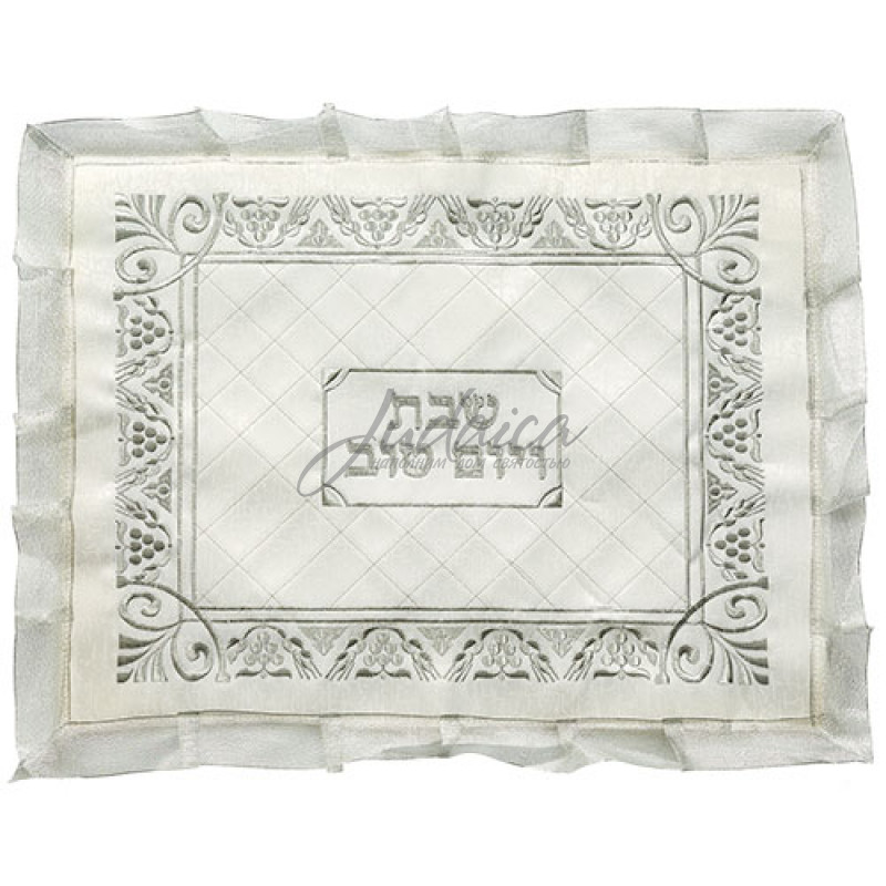 Покрывало для халы "Silver" выполнено из сатина с люрексовой серебристой нитью станет изысканным сочетанием элегантности и традиций. Оно станет отличным украшением Вашего стола или подарком к любому праздникую Сделайте Ваш Шаббат светлым и уютным с помощью покрывала для халы "Silver".