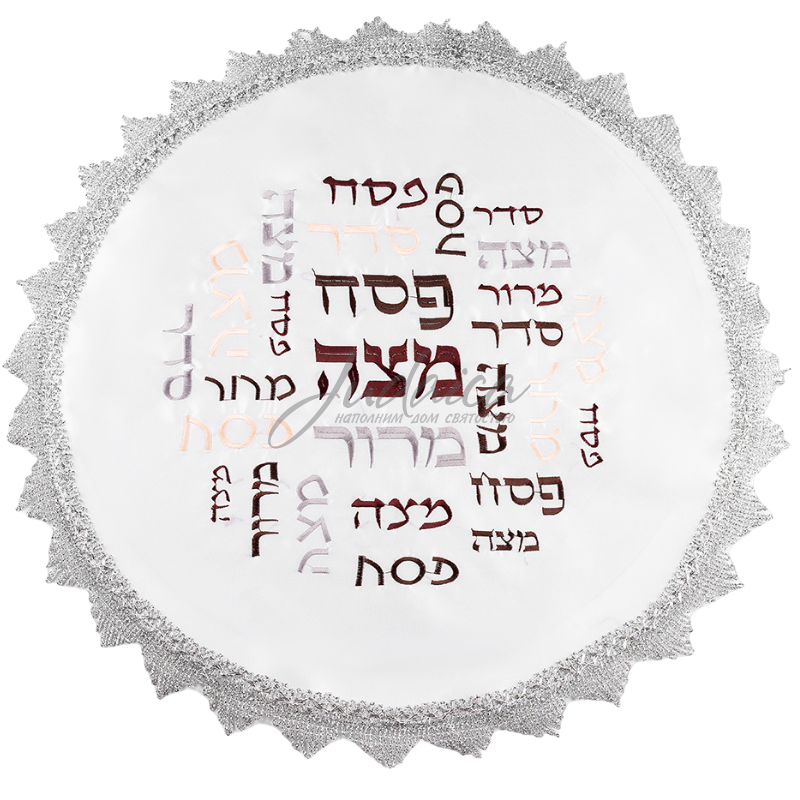 Покрывало (салфетка) для мацы "Colors" — важный элемент декора праздничного стола, функциональный аксессуар для защиты и сервировки мацы на Песах . Изготовленное из белого атласа, оно украшено выполненными вышивкой гладью вдумчиво подобранными надписями и еврейскими символами, отражающими дух Песаха и историю еврейского народа. По краям покрывало отделано серебряным кружевом. Этот аксессуар служит напоминанием о чудесном освобождении от гнета рабства и важности сохранения традиций, делая каждый Песах еще более осмысленным и памятным.