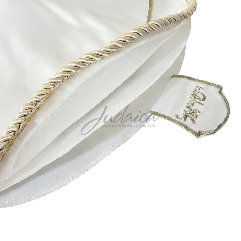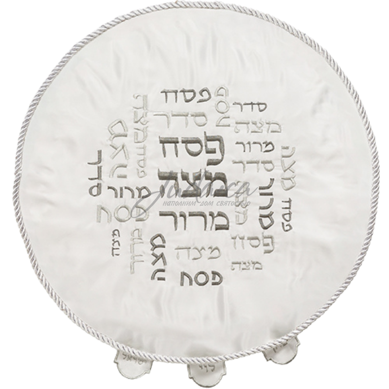 Элегантное трехслойное атласное покрывало (салфетка) для мацы "White" добавит изысканности сервировке стола для Седера. Изготовлено из белой ткани, украшено серебряной вышивкой, выполненной гладью. По краям накидка отделана шелковым витым шнуром. Идеальный размер для использования в ночь Песаха.