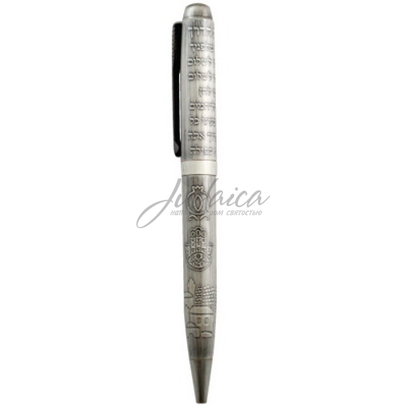 Красивая ручка в подарочной упаковке с дорожной молитвой. Особенность этой ручки - изображение Святого города Иерусалима и Хамсы, а также одного из семи видов растений Земли Израиля - граната, который является символом плодородия.